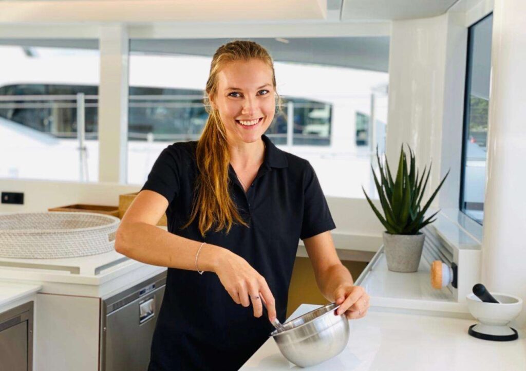 This yacht sleeps 10 guests in 5 deluxe Queen cabins. Plenty of headroom paired with ample hatches create an airy feel throughout. This Lagoon Sixty 5 has its galley up where guests will be spoiled by her fantastic chef